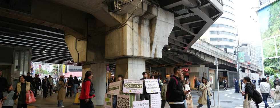 2025年11月9日(日)の午後、無生殖協会街頭活動部は24回目の街頭活動を東京都新宿区の新宿駅東南口付近、NEWoMan 新宿前の広場で実施しました。